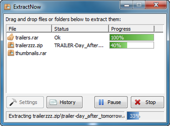 ExtractNow is een prima uitpakker. De applicatie is uiterst spaarzaam met je geheugen en rap in de uitvoering. Voor een inpakker ben je hier niet aan het juiste adres: kijk bijvoorbeeld bij WinRAR of 7-Zip.